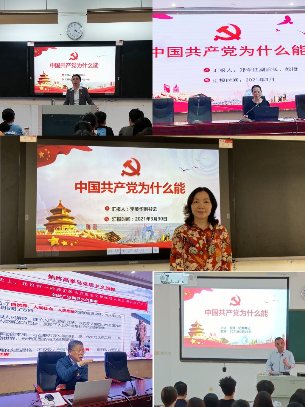 黨委副書記李美華、紀委書記游鋒、副院長陳貞健、黃銘珊、鄭翠紅等校領導從中國共產(chǎn)黨具有科學的理論指導、堅定的理想信念、強大的組織優(yōu)勢、堅實的群眾基礎、徹底的自我革命等五個方面,全面闡述了中國共產(chǎn)黨創(chuàng)造中國奇跡的原因所在。校領導的開講,引起了我校師生的廣泛熱議。