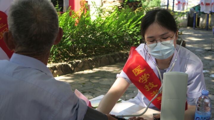 ??圖為紅色筑夢隊為村民免費義診,提高村民健康意識。中國青年網(wǎng)通訊員 方宇 攝