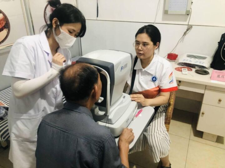 ?圖為志愿者為村民進行視力檢查。中國青年網通訊員 張烽 攝?