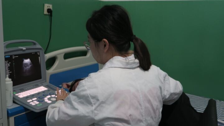 圖為志愿者為村民進行B超檢查。中國青年網通訊員 黃佳麗 攝