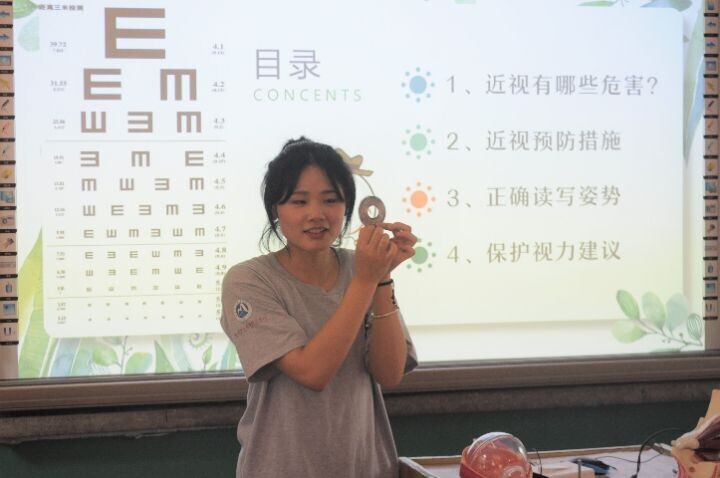 ?圖為紅色筑夢隊隊員想向小朋友們展示眼球模型及講述保護眼球知識 中國青年網通訊員 黃佳麗 攝?