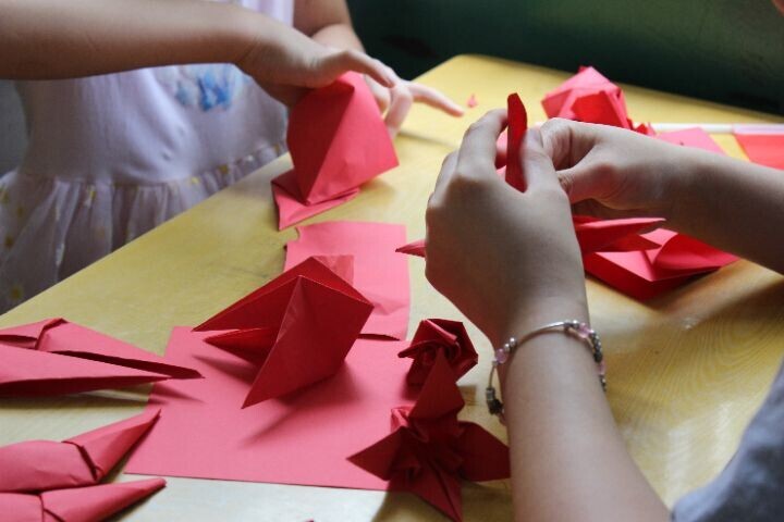 ?圖為紅色筑夢隊隊員幫助小朋友們一起完成手工藝 中國青年網通訊員 黃佳麗 攝??