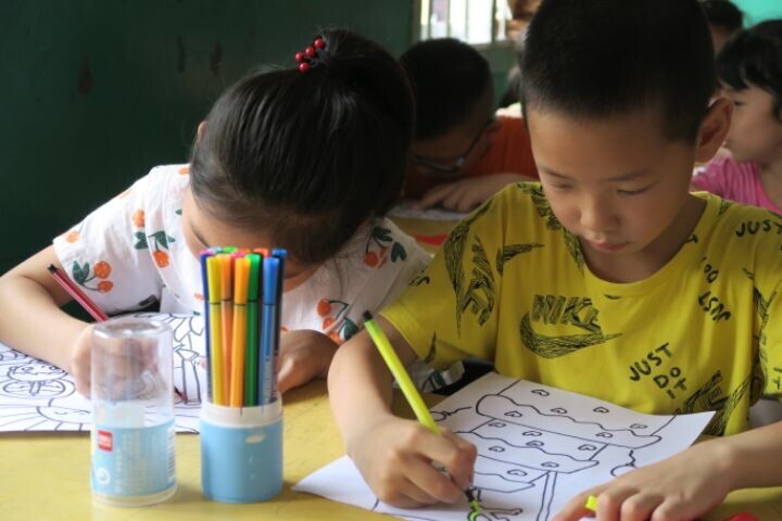 ?圖為小朋友們認真作畫的模樣 中國青年網通訊員 黃佳麗 攝???