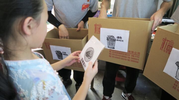 ?圖為小朋友們將學習到的垃圾分類知識運用到實踐中 中國青年網通訊員 黃佳麗 攝?