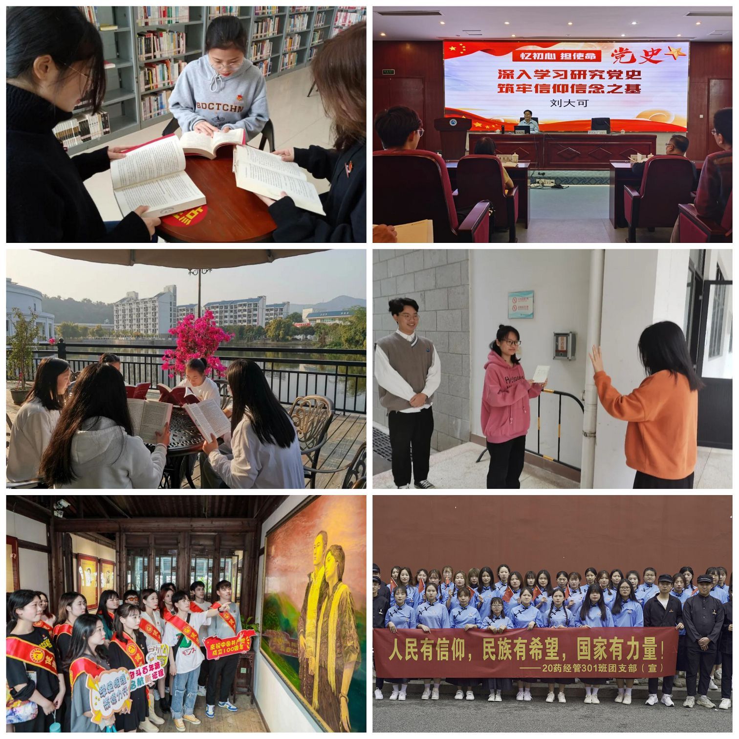 個人自學。各團支部推薦學習資料,組織同學們到校圖書館借閱黨的理論、黨的綱領、黨的章程等相關書籍,認真學習黨史,了解黨情,在重溫初心中厚植人民情懷、在咀嚼苦難中堅定人生信仰、在偉人事跡中樹立人生榜樣。