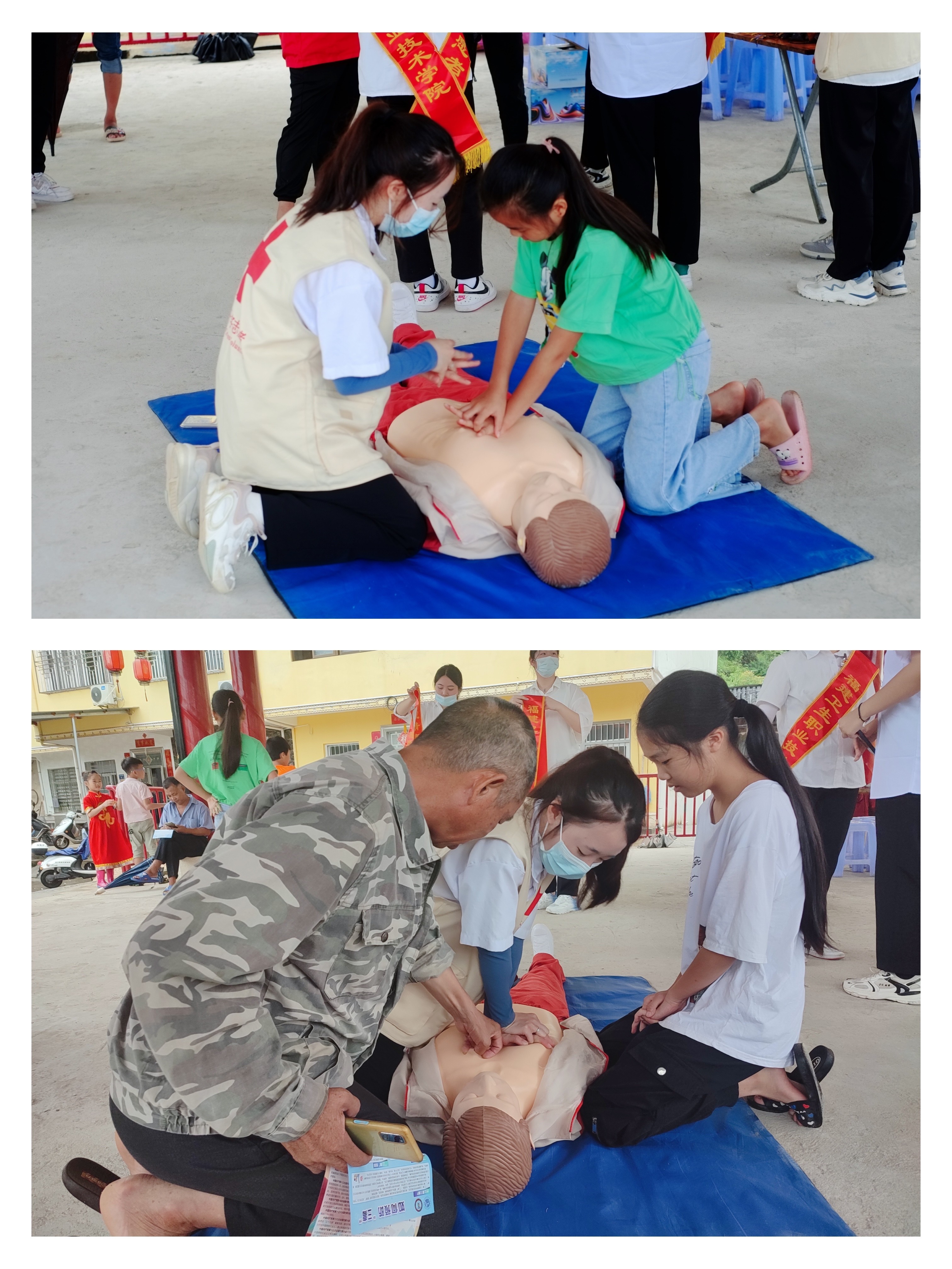 為發揮醫藥學生專業特長,助力鄉村衛生健康,實踐隊在云霄縣坡兜村中央大舞臺“鳳儀臺”為鄉民們開展急救知識培訓,圍繞在突發情況下的“黃金幾分鐘”我們能做些什么,向鄉民普及急救知識。鄉民們積極參與、主動學習,感受急救對生命健康的重要意義。