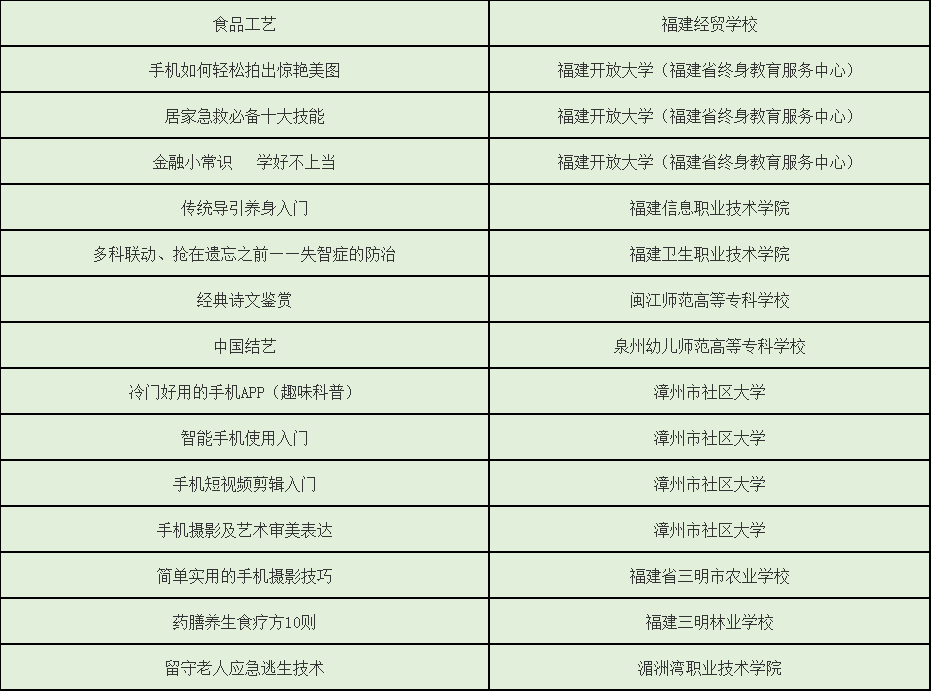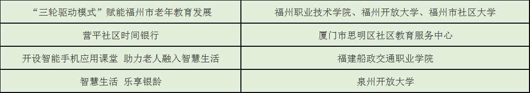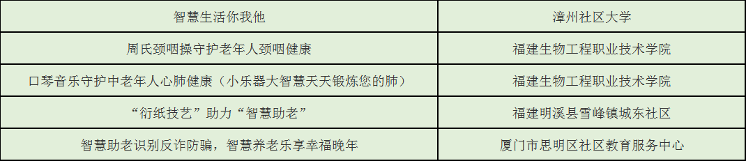 “智慧助老”優質教育培訓項目中,漳州社區大學的《智慧生活你我他》等5個項目入選。