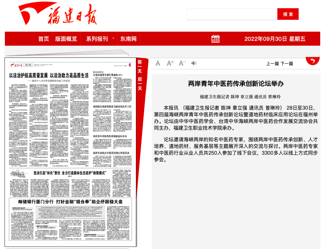 福建衛生報 2022年9月30日 鏈接:https://mp.weixin.qq.com/s/o1A5mPPf6Z0U8GdJFrzalg