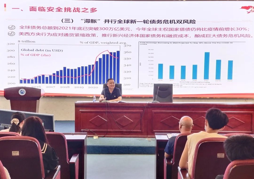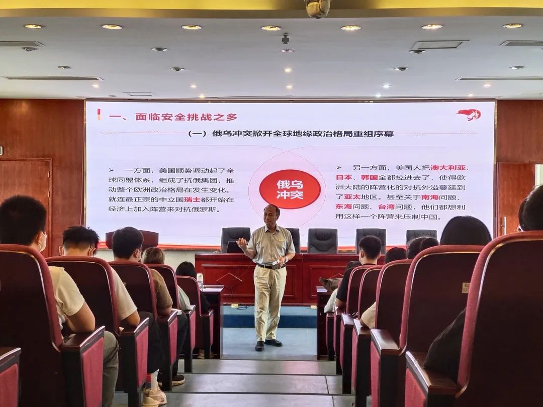 校黨委書記曾武祈以“牢樹全球視野 厚植家國情懷 以青春擔當踐行人類命運共同體理念”為題,著重梳理了當前復雜多變的國際局勢、黨和國家面臨的安全挑戰及其背后動因,為師生們帶來了一堂理論深刻、視野開闊、內容豐富,極具吸引力和感染力的形勢與政策課。在他的講述中,廣大師生充分感受到了中國在全球變局中化危為機、勇毅前行的卓越能力。曾武祈指出,黨的二十大必將擘畫發展新藍圖,贏得更加偉大的勝利和榮光,廣大師生應比以往更加堅定地迎接世界的變革與挑戰,以實際行動詮釋自己對國家和民族的責任和擔當。