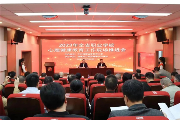 “作為福建省高校學生心理健康教育工作基本建設標準示范校,我們面向全體學生開展積極心理教育,全面培育學生積極的心理品質。注重將心理健康教育與美育、體育、傳統文化相結合,在專業課程教學中融入心理健康教育。”福建幼兒師范高等??茖W校黨委書記鮑仕梅為大家介紹了學校多元融合推進學校心理健康教育工作的思路和做法。福州、莆田市委教育工委,福建衛生職業技術學院、福建工業學校也結合本地本校實際,相繼在推進會上交流分享了職業學校心理健康教育工作的經驗和做法。