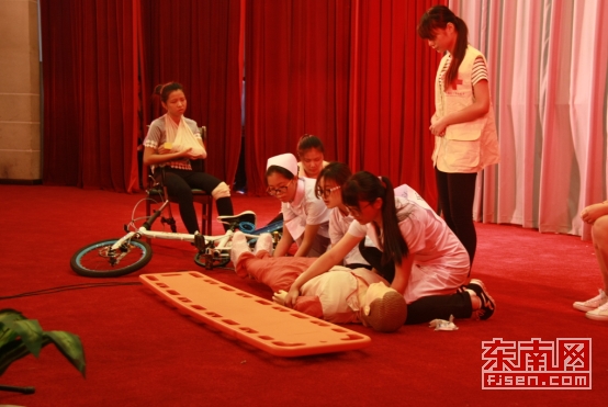 福建衛生職業技術學院的紅十字青少年開展模擬情景下的應急救護演練活動