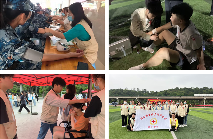 在校內,醫療志愿服務站為全校師生提供免費藥品領取、傷口緊急處理等醫療健康服務,并助力新生入學體檢和校運動會期間醫療志愿服務,志愿服務站的工作有效應對突發事件,提高學生健康水平,成為學校衛生保健工作的得力助手。