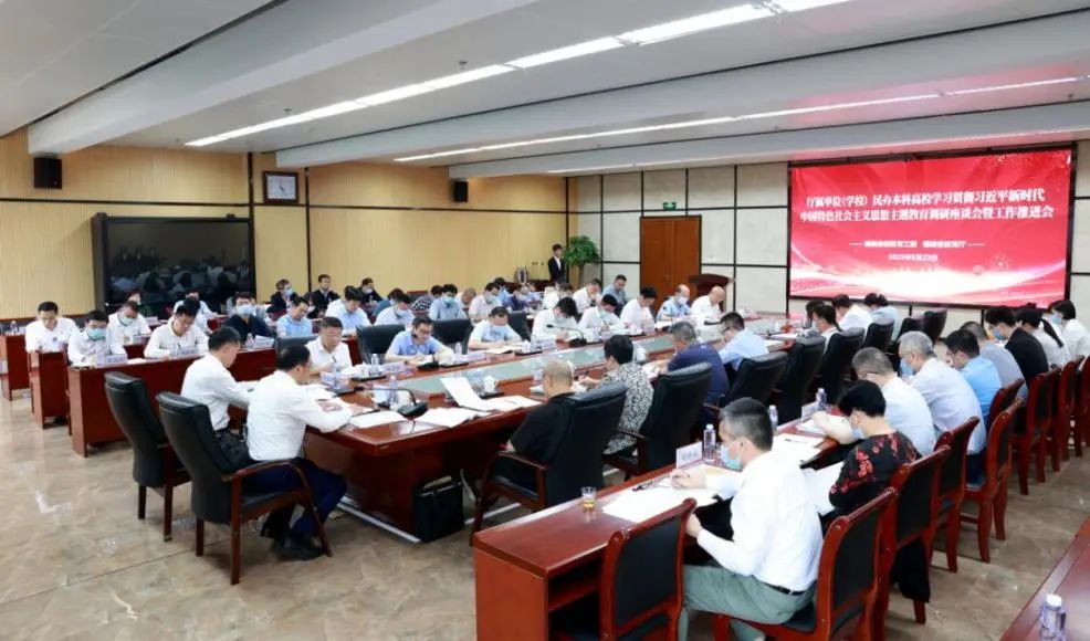 40家廳屬單位(學校)、民辦本科高校主要負責同志,委廳主題教育領導小組辦公室各工作組主要負責人等參加會議。會前,與會人員實地調研陽光學院辦學成果展廳,了解學院的發展歷程、黨建與思政建設、專業設置及科研成果。