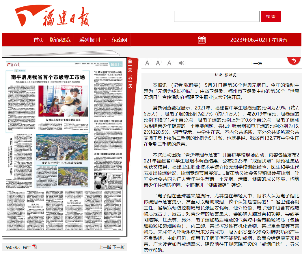 福州日報 2023年6月1日 鏈接:https://share.fznews.com.cn/pub/template/displayTemplate/news/newsDetail/159/428247.html?isShare=true