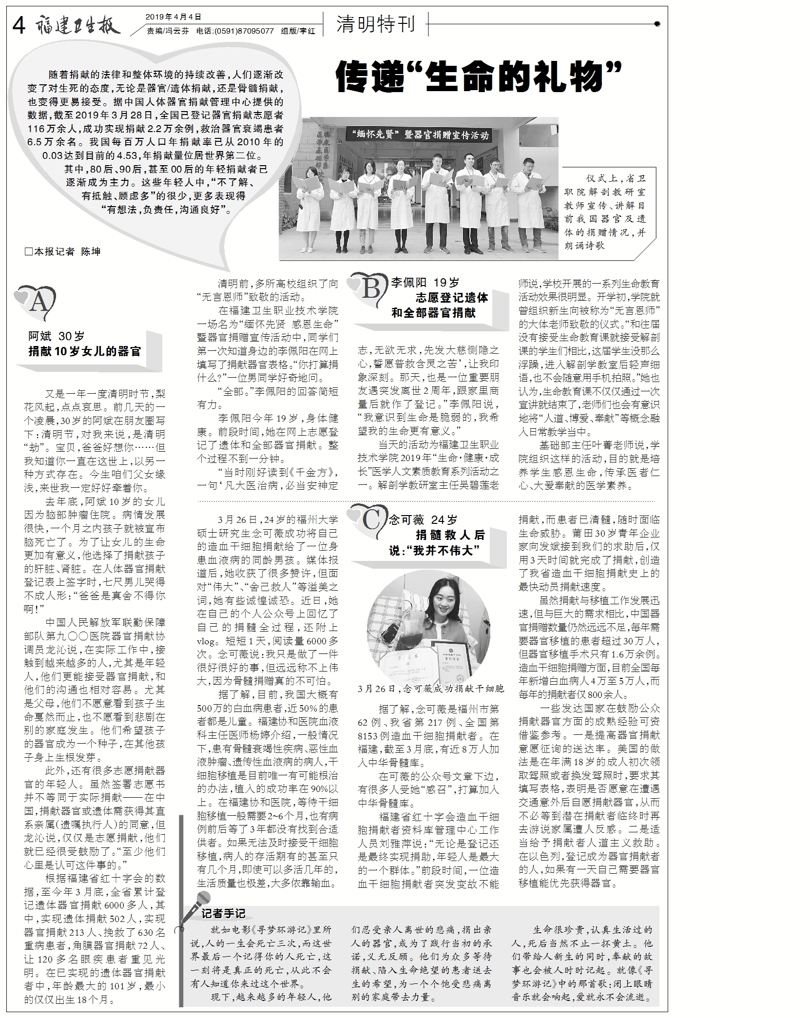 【福建衛(wèi)生報】傳遞“生命的禮物”