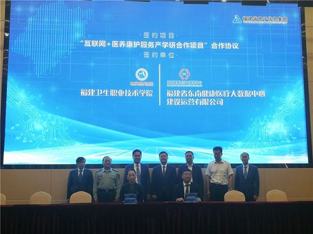 5月5日,福建衛生職業技術學院與東南健康醫療大數據公司在福建省電子信息集團主辦的數字福建產業生態合作伙伴專場簽約會上簽訂了“互聯網+醫養康護服務平臺構建與應用研究”產學研協議,探索通過互聯網技術構建醫院、養老機構、康護中心、社區、家庭等多級護理。