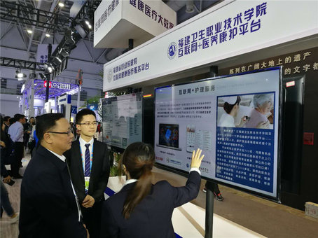 峰會現場7號館的國家衛健委展區,福建衛生職業技術學院展出的互聯網醫養康護服務平臺