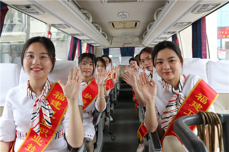 五一期間,志愿者就開始接受培訓。5月3日上午7點,福建衛生職業技術學院護理系黨總支書記謝濤和志愿者們出發前往長樂分論壇。經過前期通用知識、形象禮儀和崗位技能培訓,3日的會議演練每位志愿者都展現了良好的精神面貌。為了保障學生安全,學校在離長樂分會場1公里的地方安排學生住宿。