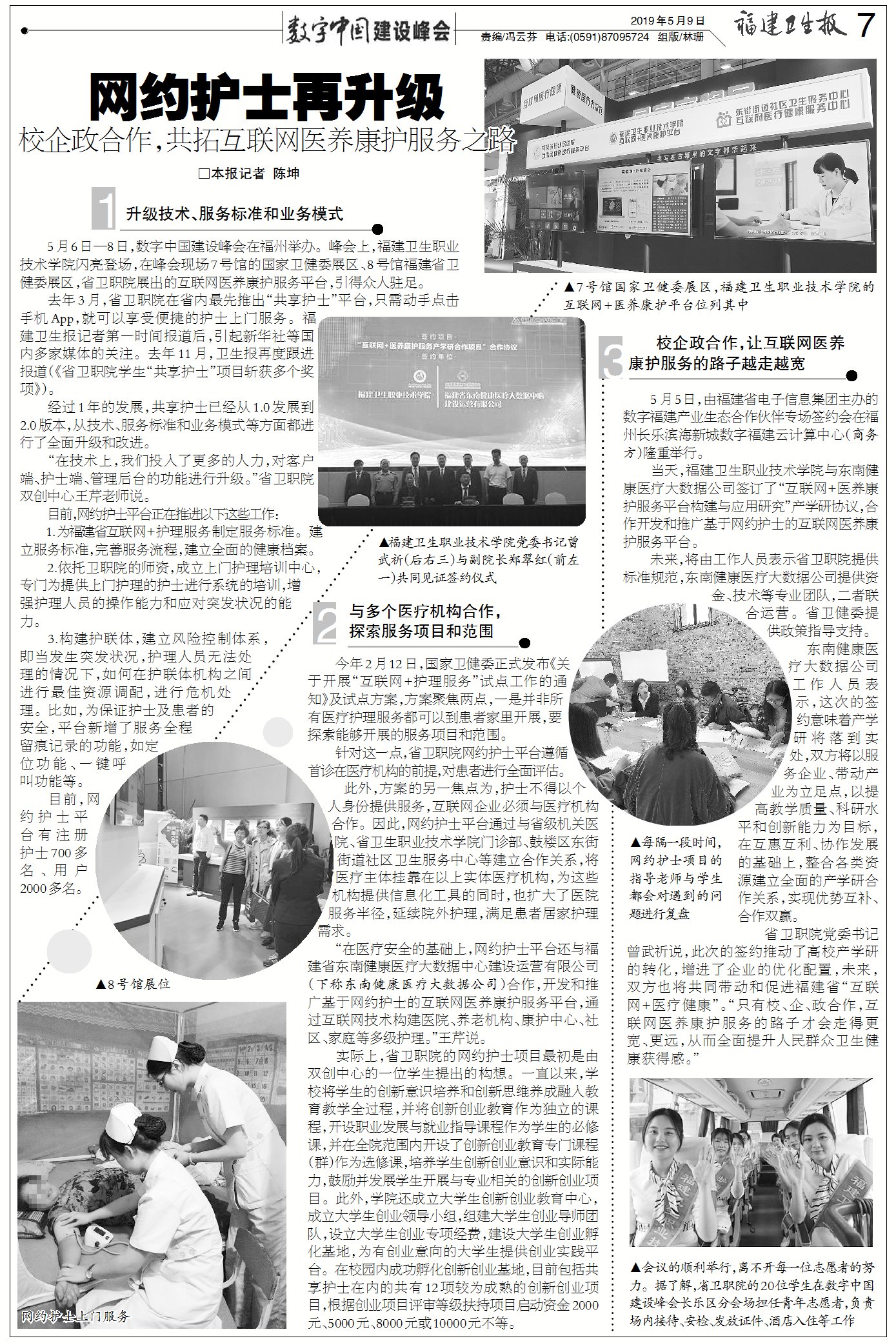 【福建衛(wèi)生報】網(wǎng)約護士再升級!校企政合作,共拓互聯(lián)網(wǎng)醫(yī)養(yǎng)康護服務之路