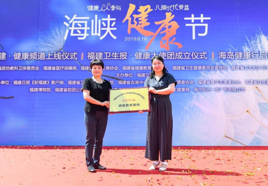 值得一提的是,省血液中心無償獻血科普教育基地被授予了福建衛生報健康教育基地,現場舉行了授牌儀式。