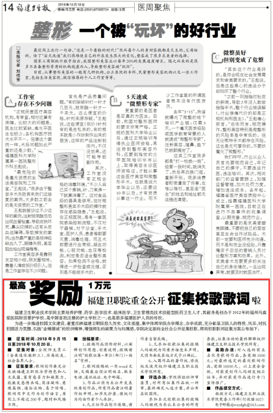 福建衛生職業技術學院版權所有學院地址:福州市閩侯荊溪關口366號(郵編:350101)聯系電話:黨政辦公室 0591-22869917 招生就業辦公室 0591-22869955繼續教育學院 0591-22869959 閩ICP備05007543號 閩公網安備 35012102000005號