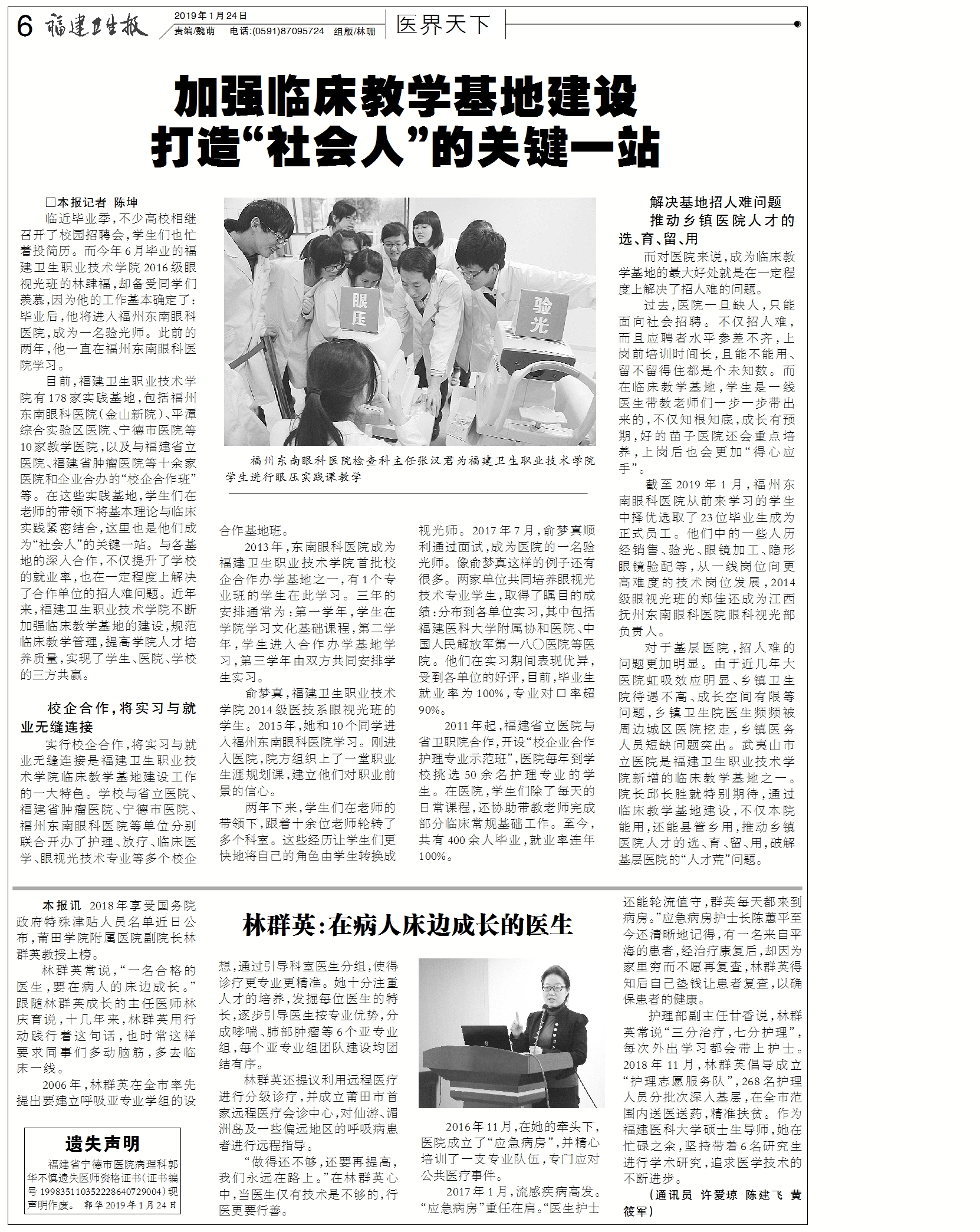 【福建衛生報】加強臨床教學基地建設打造“社會人”的關鍵一站