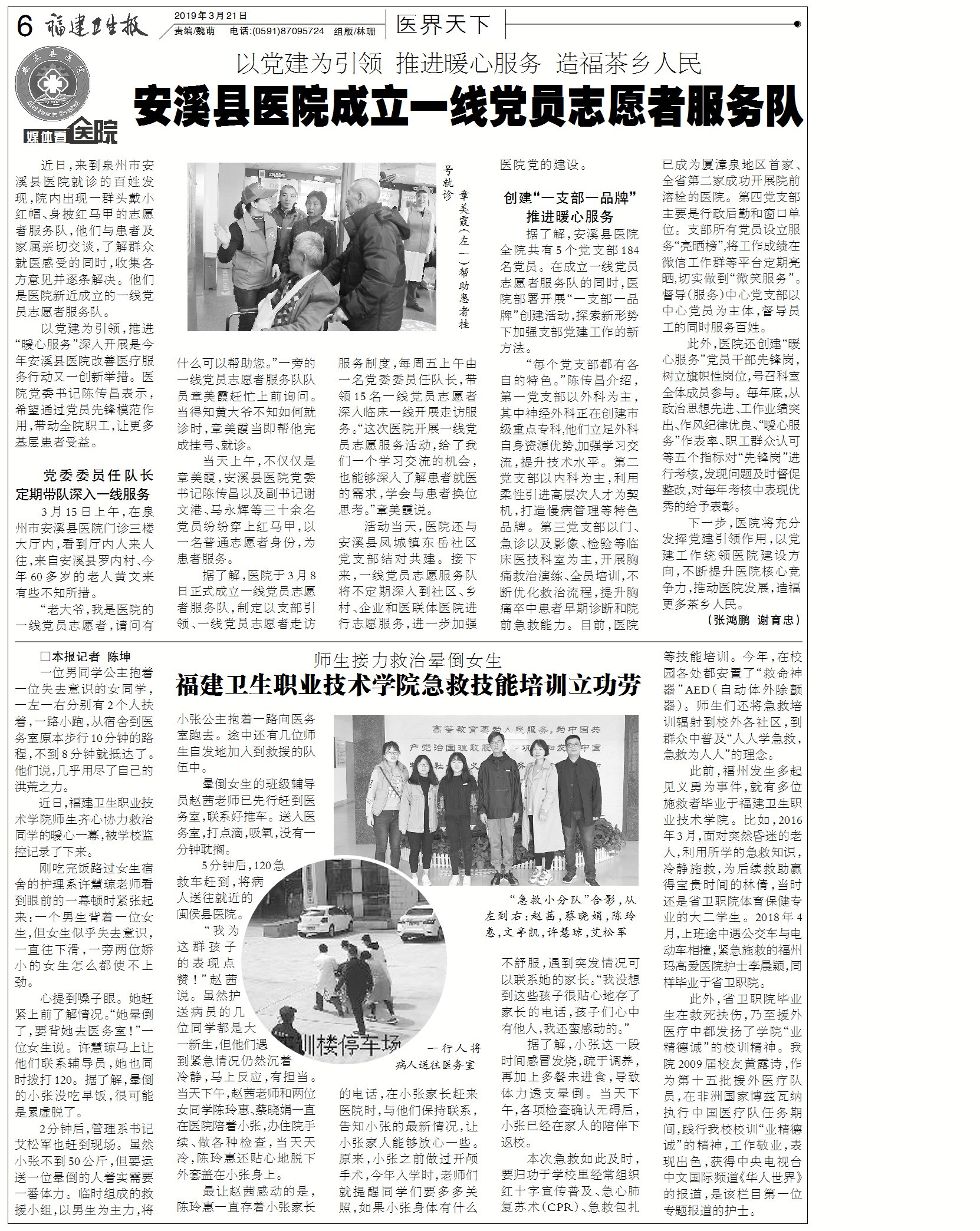 【福建衛生報】福建衛生職業技術學院急救技能培訓立功勞