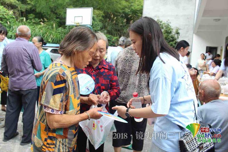 成員們正在為老人們分發常用藥品,老人們都很是感激。中國青年網通訊員 吳雪兒 攝