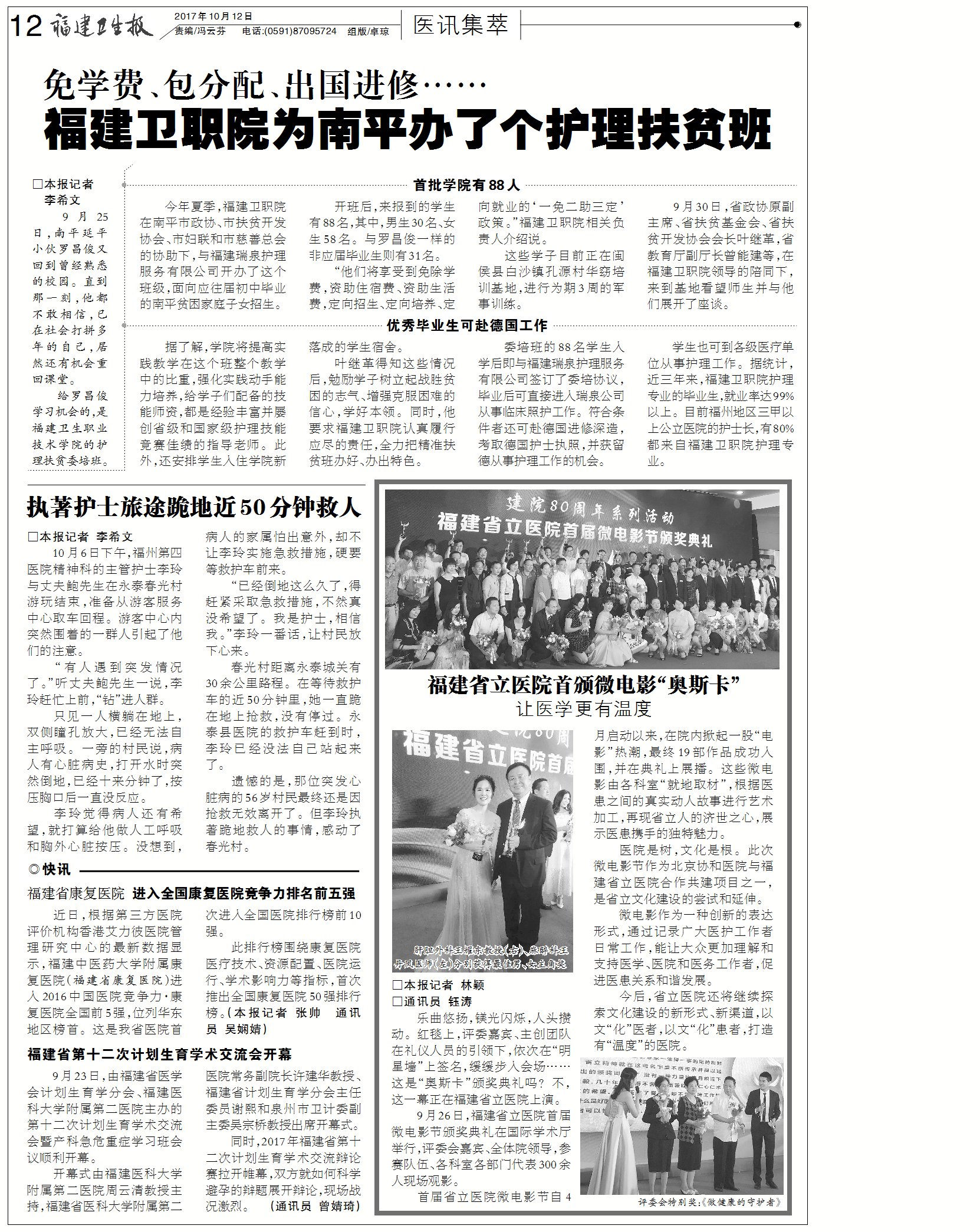 福建衛生職業技術學院版權所有學院地址:福州市閩侯荊溪關口366號(郵編:350101)聯系電話:黨政辦公室 0591-22869917 招生就業辦公室 0591-22869955繼續教育學院 0591-22869959 閩ICP備05007543號 閩公網安備 35012102000005號