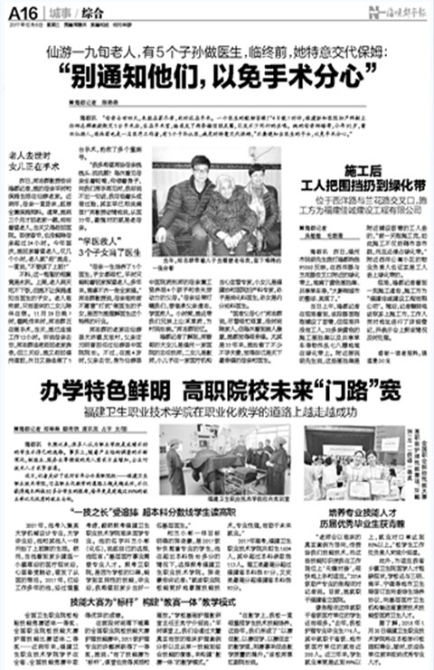“老師會以臨床的真實案例為導向,傳授給我們技能技術,而這些技能知識使我在工作崗位上‘無縫對接’,很快地上手和適應。”2014級助產專業的張程依對記者說。目前,她就職于福建省立醫院。