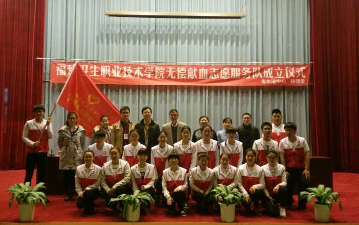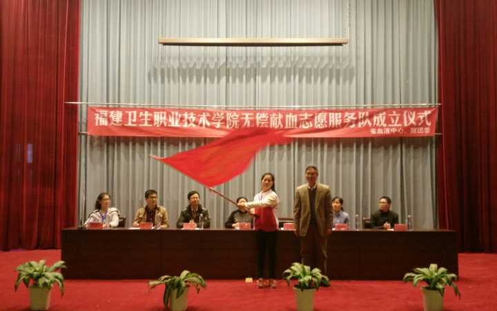 2016年3月9日,福建衛生職業技術學院無償獻血志愿服務隊舉行了成立儀式,這是福建省血液中心在高校成立的第四支無償獻血志愿服務隊。福建衛生職業技術學院魏立娜副院長,省獻血工作辦公室副主任、省血液中心黨委書記吳建忠參加了儀式。