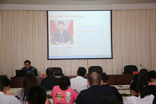林書記從開展“兩學(xué)一做”、強(qiáng)化黨員意識(shí),堅(jiān)持“三個(gè)導(dǎo)向”、明確學(xué)習(xí)要求,立足崗位履職、提升學(xué)習(xí)成效3個(gè)方面闡述了“兩學(xué)一做”學(xué)習(xí)教育的背景、內(nèi)涵、目的意義和總體要求,重點(diǎn)闡述了為何突出問題導(dǎo)向、責(zé)任導(dǎo)向、紀(jì)律導(dǎo)向,解決實(shí)際問題、注重黨員擔(dān)當(dāng)、嚴(yán)謹(jǐn)作風(fēng)黨風(fēng)。