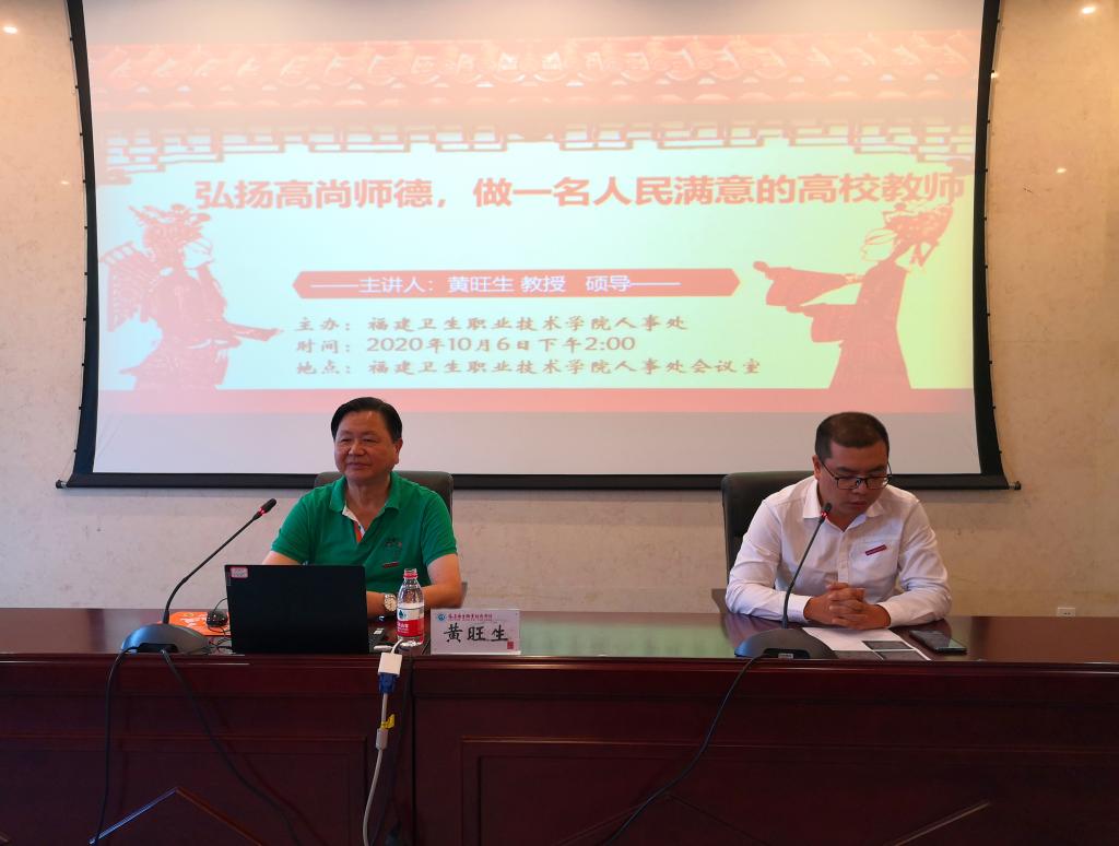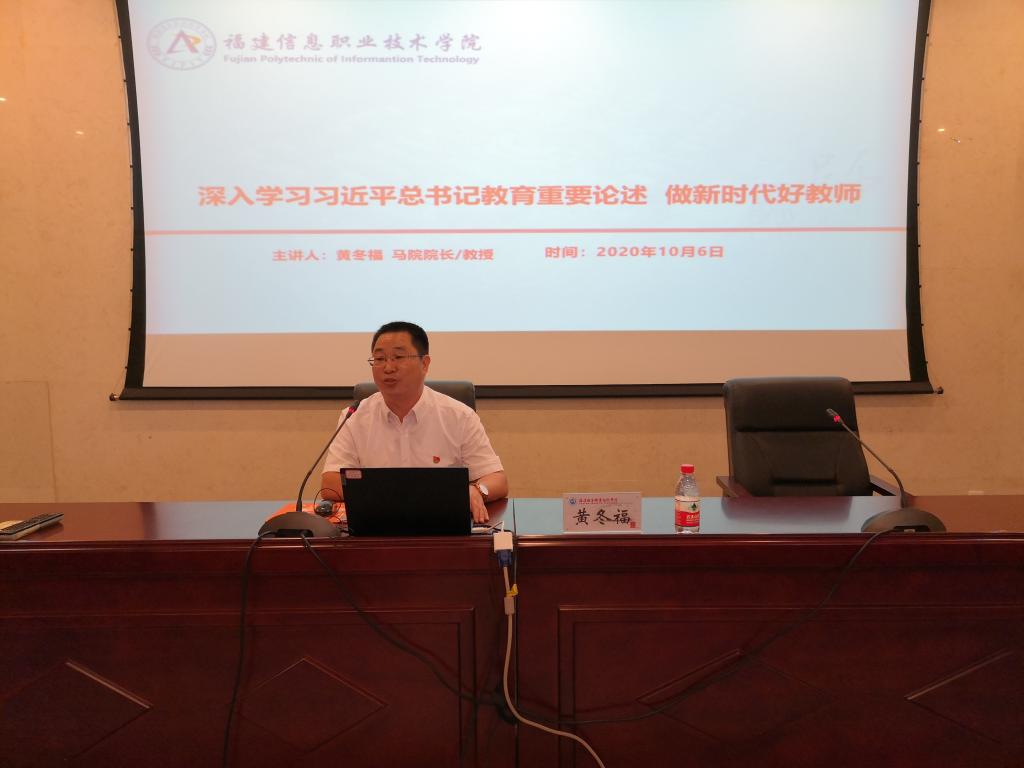 為進一步加強我院師德師風建設,引導教師以德立身、以德立學、以德施教,更好擔當起學生健康成長指導者和引路人責任,學院于10月6日至7日舉辦為期兩天的師德師風系列專題講座。先后邀請了福建信息職業技術學院馬克思主義學院院長黃冬福教授,福建農林大學黃旺生教授和福建師范大學黃仁賢教授開展講座。全體新入職教師及青年教師代表聆聽講座。
