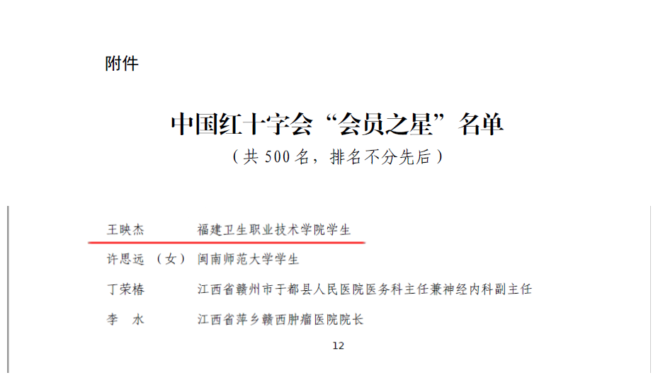 為推進紅十字會組織體系建設,夯實紅十字事業發展基礎,發揮會員在紅十字事業發展中的主體作用,激發會員參與和支持紅十字事業的熱情,增強會員的歸屬感、榮譽感,提升會員工作水平,中國紅十字會總會開展中國紅十字會“會員之星”推選活動,我校醫學技術系20級影像301班王映杰同學榮獲中國紅十字會“會員之星”稱號,是我省唯一榮獲此項殊榮的高職生。