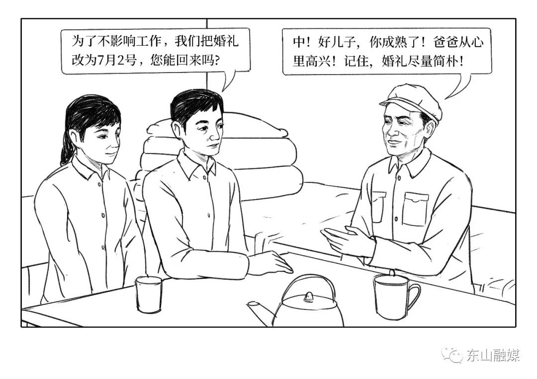 臨近婚期,他們才把結婚的喜事稟報母親。母親非常高興。可是當他們把辦喜事的日期告訴父親谷文昌時,父親說:“7月1日結婚的想法很好!可是我這里太忙了,7月1日沒法回家。”谷豫閩深知父親的性格,叫他放下手中工作回家是不可能的。“這樣吧”,谷豫閩跟父親說:“我們把婚禮改為7月2號,您能回來嗎?”父親顯得非常激動:“中!好兒子,你成熟了!爸爸從心里高興!記住,婚禮盡量簡樸!”