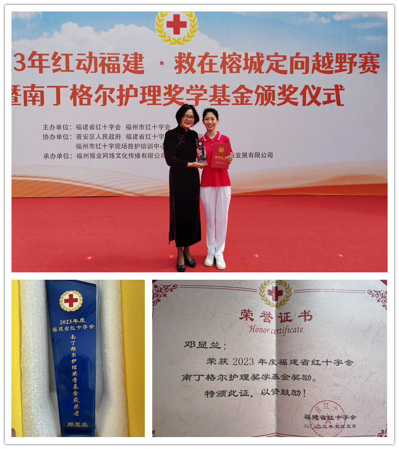 5月13日,福建省紅十字會(huì)2023年度南丁格爾護(hù)理獎(jiǎng)學(xué)基金頒獎(jiǎng)儀式在福州舉行,我校護(hù)理學(xué)院2020級(jí)護(hù)理309班鄧顯蘭同學(xué)獲此殊榮。