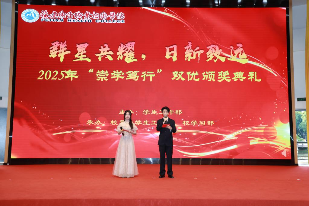5月13日晚,暮色輕垂,學校崇學廳內燈火如晝,暖光流轉。校領導、相關職能部門負責人、二級學院黨委書記、輔導員及學生代表們踏著仁心湖畔棧道走來,衣袂間流轉著初夏的晚風。當主持人清越的嗓音劃破暮色,2025年“崇學篤行”雙優頒獎典禮這場湖畔之約便在波光與星光的見證下,徐徐展開華章。