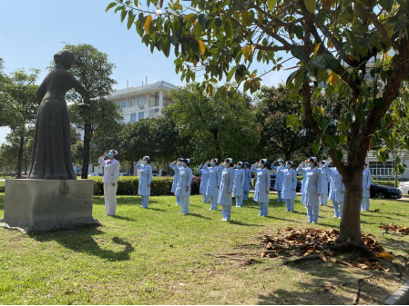 “我宣誓,我志愿獻身護理事業,熱愛護理專業,謹奉社會主義人道主義精神,堅定救死扶傷的信念……”4月29日上午,福建省支援湖北第八批醫療隊員、2016年畢業于我院護理專業的援鄂校友陳雨雯莊嚴肅立,帶領護理系教師代表在護理系辦公樓南丁格爾雕像前領銜宣讀南丁格爾誓詞,站在她身后的不少老師都曾是陳雨雯在校期間的老師,老師們看著領誓的陳雨雯,自豪之情溢于言表。