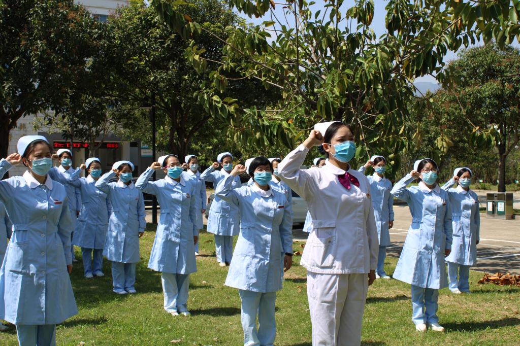 福建衛(wèi)職院黨委副書記李美華說:“福建衛(wèi)職院114名優(yōu)秀校友在此次抗擊新冠肺炎疫情中‘扛槍上陣’奔赴援鄂一線,用實際行動充分踐行初心與使命、闡述‘業(yè)精德誠’的校訓(xùn)和南丁格爾精神。陳雨雯作為護理隊伍中的年輕一輩,國難當頭挺身而出,用實際行動詮釋著護理人的專業(yè)和奉獻精神,是學(xué)校的驕傲,也是后輩們的榜樣。今天的宣誓還將制作成視頻,傳到網(wǎng)上,請入學(xué)的新生觀看。此外,今年“5·12”國際護士節(jié)前,我們還將采用線上線下相結(jié)合辦法,開展致敬抗疫優(yōu)秀校友主題黨日活動,組織黨員宣誓和護生宣誓、黨員教師宣講、援鄂黨員校友上黨課、援鄂校友經(jīng)驗交流宣講等,讓師生們感受南丁格爾“救死扶傷、無私奉獻”的精神,培養(yǎng)新時代護理人的責(zé)任與擔(dān)當。”