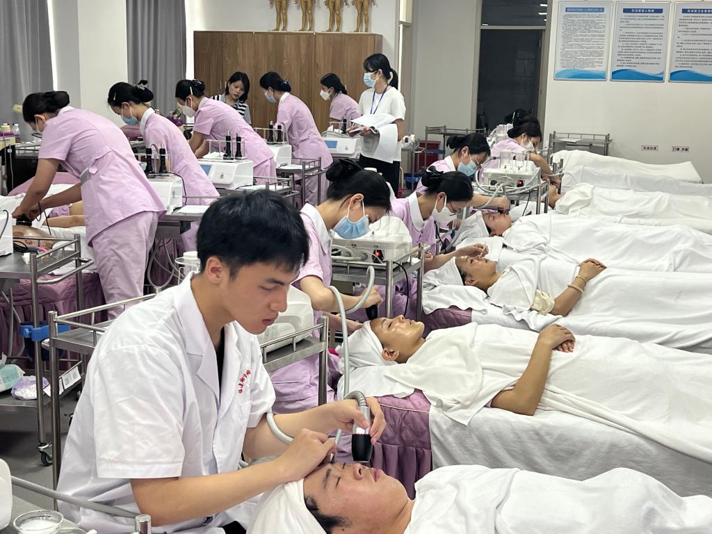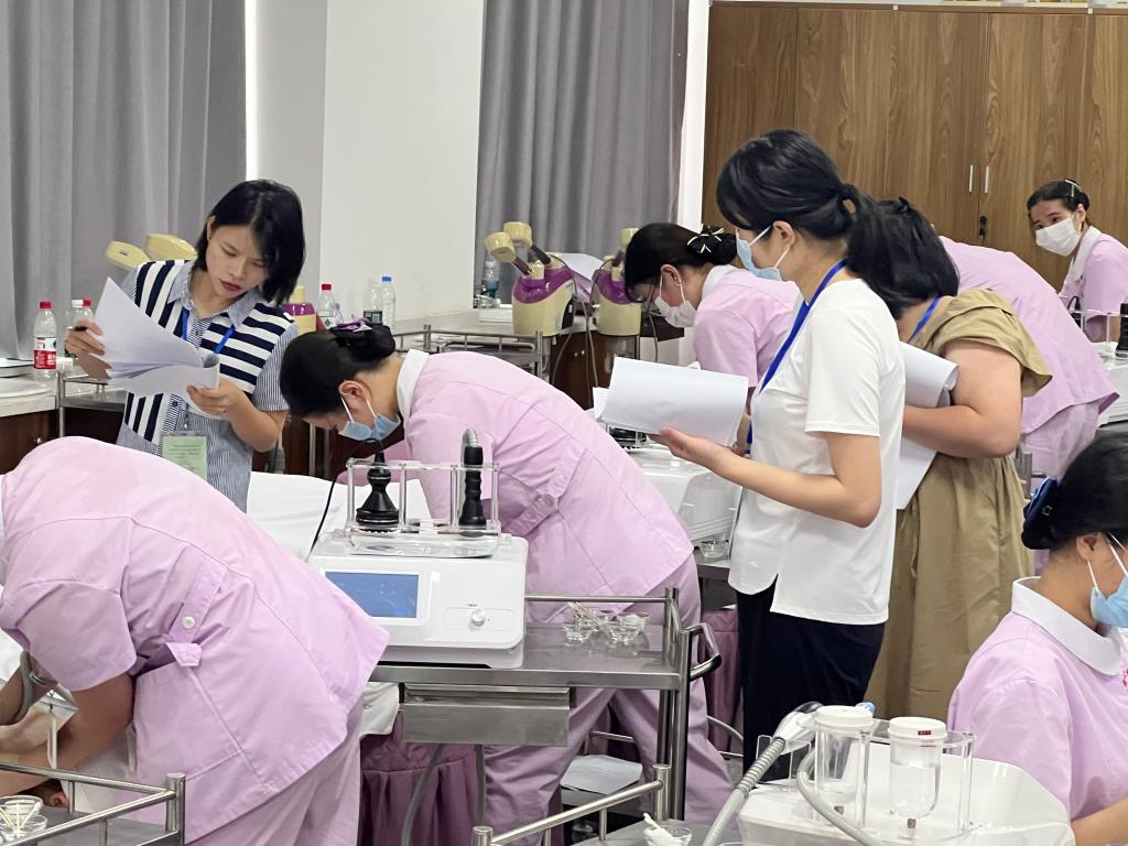 6月22日,我校順利完成2024年“1+X”美容光電儀器操作職業技能等級(中級)考核工作,50名醫學美容技術專業學生參加考核。