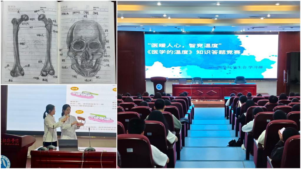 專業(yè)技能競賽有效激發(fā)了學生的學習熱情,培養(yǎng)學生嚴謹求實的治學態(tài)度。通過以賽促學,營造“互學互鑒、共同進步”的良好氛圍,促進理論知識與實踐能力同步提升,有效提高了學生的自主學習能力。說專業(yè)比賽、醫(yī)學人文好書推薦和優(yōu)秀筆記征集等學風建設類活動,將專業(yè)與人文精神有機結合,精準對接大學生成長需求,助力學生樹立正確的職業(yè)價值觀,有效幫助同學們深化專業(yè)認知、明晰職業(yè)發(fā)展方向。系列活動的開展,實現(xiàn)了“以賽促學強本領,以文化人育英才”的目標。
