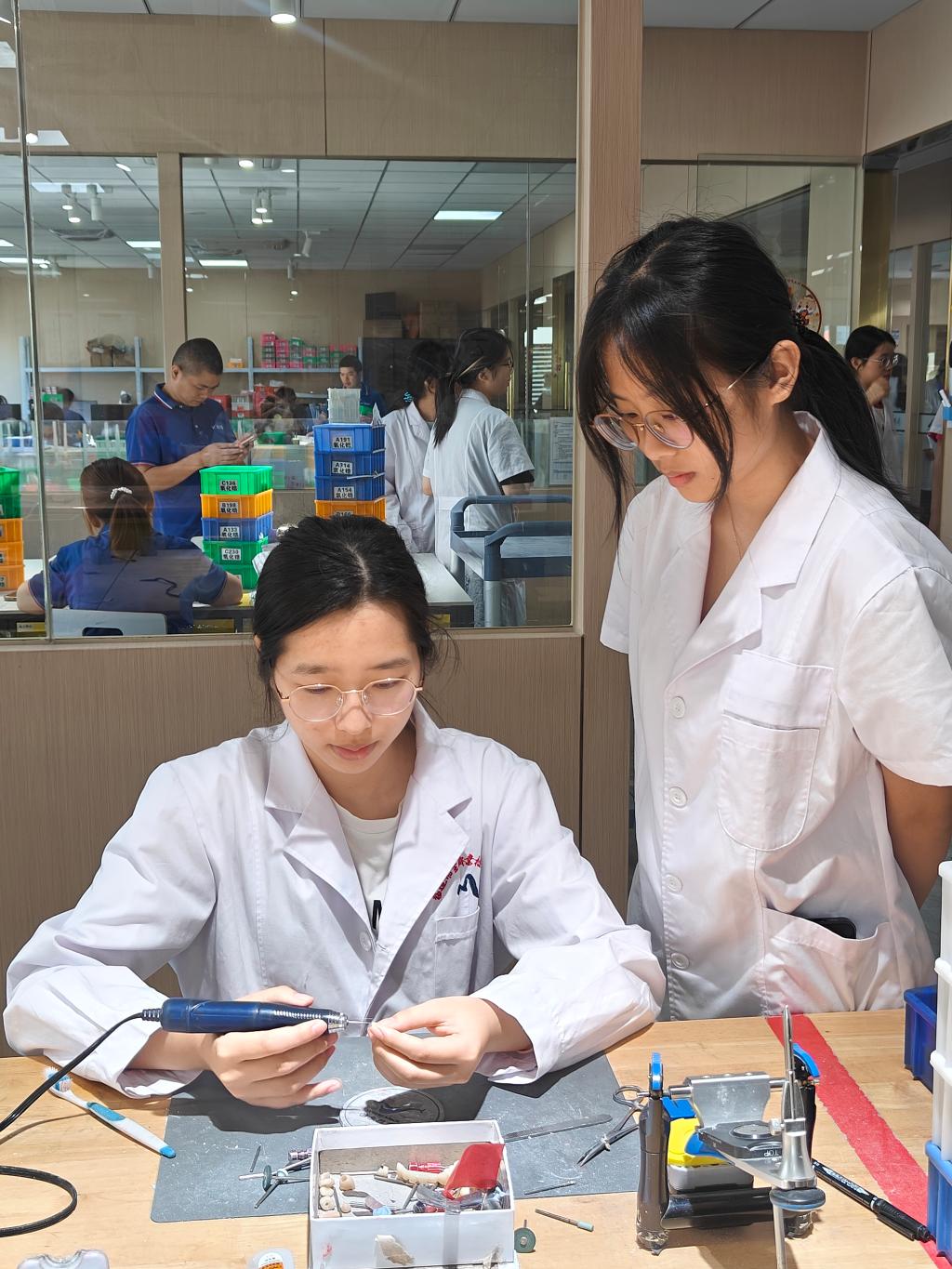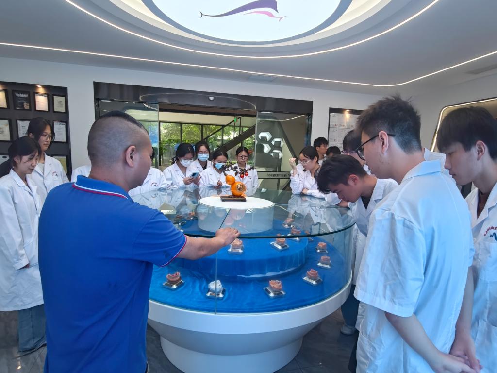 活動當日,訓練營學員在專業教師的帶領下,走進維爾德義齒加工中心與美可普口腔醫院,開啟沉浸式的實地參觀學習之旅。在維爾德義齒加工中心,學員們深入生產一線,近距離觀察義齒制作的精密流程,親手操作先進設備,感受義齒加工技術的精細化與專業化;在美可普口腔醫院,學員們穿梭在不同科室之間,通過模擬接診、實操診療設備,熟悉口腔診療全流程,從問診檢查到方案制定,從治療實施到術后護理,全方位掌握各崗位核心技能。這種“零距離”接觸企業與崗位的實踐方式,不僅讓學員們精準把握行業崗位需求,更將課堂所學轉化為實際操作能力,極大地拓寬了就業視野。