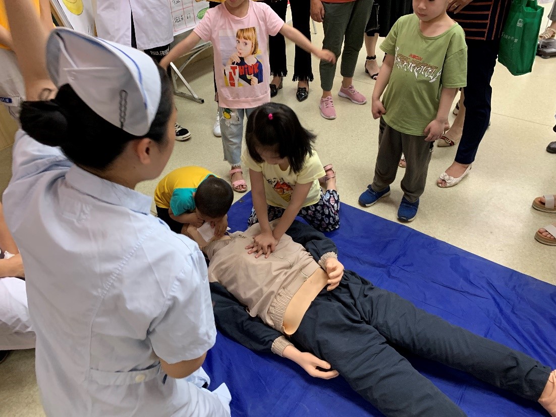 活動的尾聲,學生們現場為大家展示心肺復蘇的操作流程,并解釋“黃金4分鐘”的重要性,普及應急救援知識和實際救援技能。
