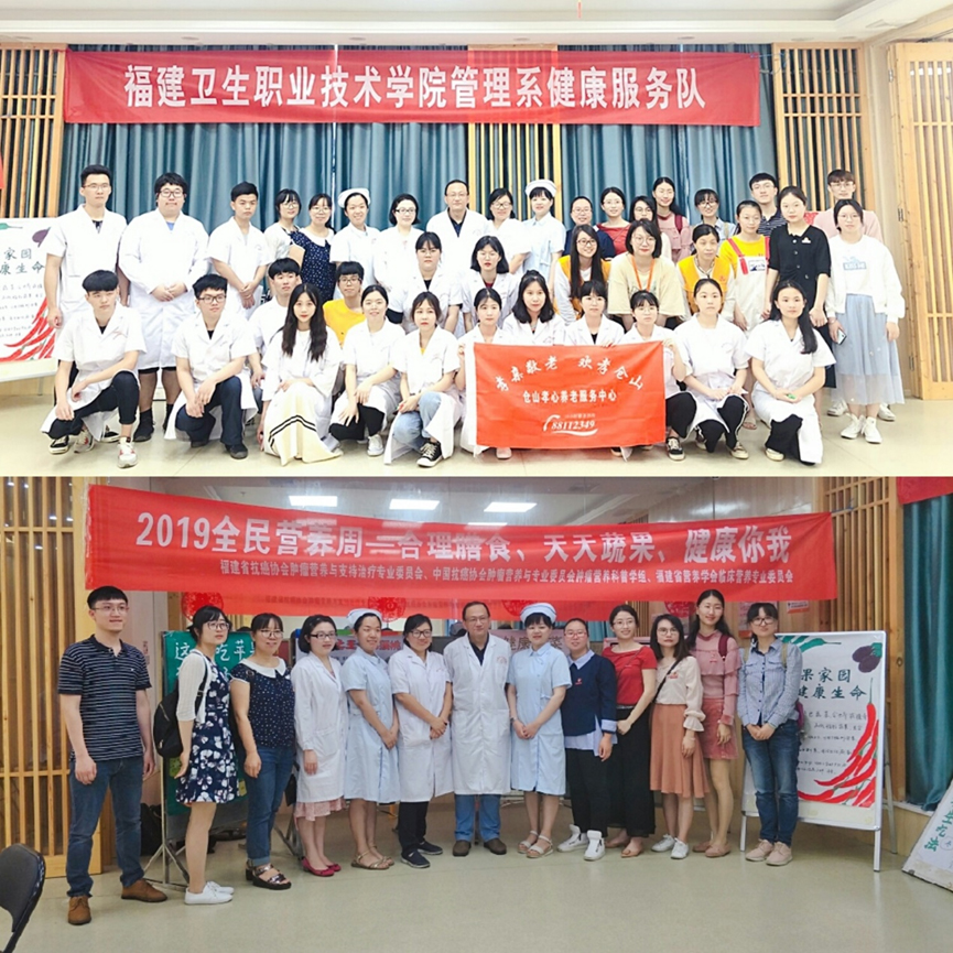 立足校園,奉獻社會,展現健康管理系的時代精神風貌。5月18日上午,我院管理系兩個教研室(健康管理、預防醫學)老師帶領18級健康管理301班的學生志愿者,聯合腫瘤醫院營養學科資深專家王曉杰副主任醫師、鄭靜嫻主治醫師及林雅、楊眉主管護師,赴“建新居家養老中心”開展一場主題為“健康管理福州行”的健康保健系列社會服務。