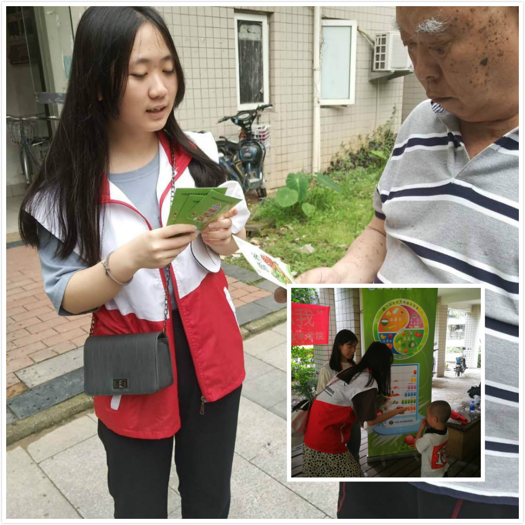 本次活動,主要分為營養調查、義診及有獎互動環節。活動開始前,老師與志愿者們通過橫幅宣傳、懸掛各類營養知識海報的形式向社區居民展示膳食寶塔、膳食指南等日常膳食營養知識。