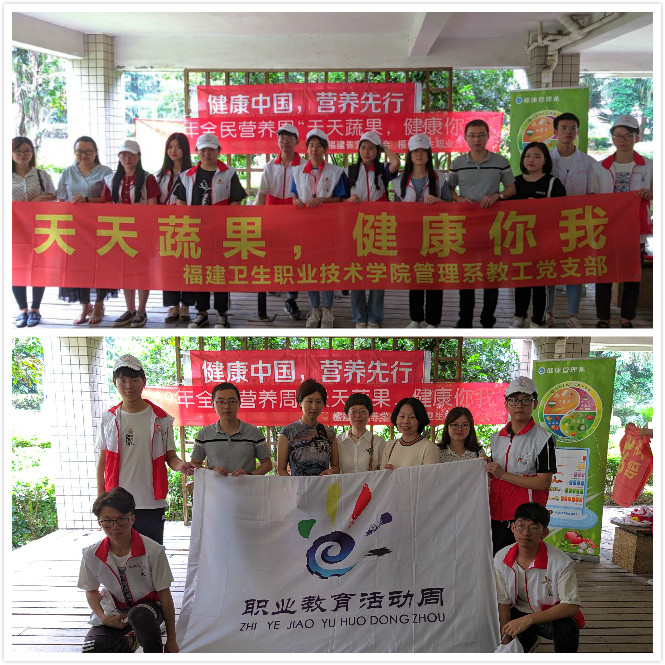 為進一步貫徹落實十九大精神,宣傳和展示職業教育成果,響應“健康中國”戰略,促進全民營養,提高全民健康水平。5月17日,管理系教工黨支部聯合醫學營養教研室前往晉安區幸福城小區,開展“天天果蔬,健康你我”職教體驗活動。管理系教工黨支部黨員、管理系醫學營養專業教師以及學生志愿者共25人參加了此次活動。