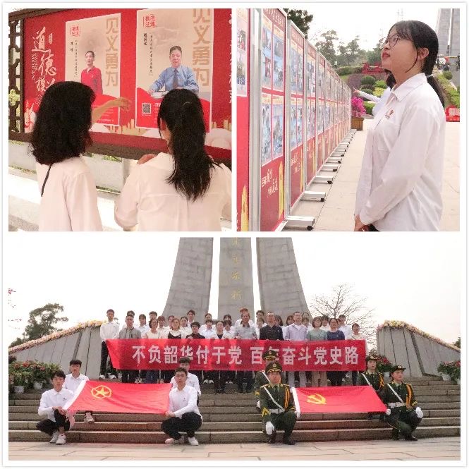 在烈士碑前,在校宣傳部部長(zhǎng)柯瓊鶯領(lǐng)誓下,全體黨員重溫入黨誓詞,不忘初心、牢記使命。