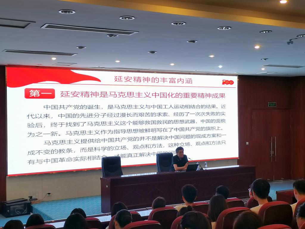 2020年4月,習近平總書記在陜西考察時指出:“延安精神培育了一代代中國共產黨人,是我們黨的寶貴精神財富?!睘榱俗寣W子們能夠深刻認識、了解延安精神,洪聿榮從“什么是延安精神”、“延安精神的豐富內涵”、“青年學子要從延安精神中學到什么”這幾個方面結合自己的親身經歷進行闡述。同時還勉勵青年學子們要保持“心之所向,素履以往”的理想信念;要提升“人生在勤,不索何獲”的學習理念;要提升“砥志研思,精進不休”的學習動力。用更高的標準來嚴格要求自己、磨礪自己,繼續傳承和發揚艱苦奮斗、知難而上、奮勇前行的精神,讓青春無悔成就人生大我。