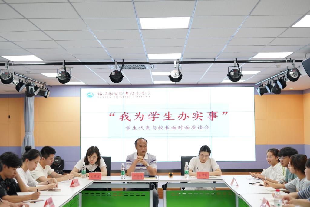 2021年5月20日下午,校學(xué)生會在團(tuán)委青年之家舉辦“我為學(xué)生辦實(shí)事”黨史教育實(shí)踐活動調(diào)研暨院長許能鋒與學(xué)生代表面對面座談會。許能鋒從第五次學(xué)生代表大會的代表中隨機(jī)抽取35名同學(xué)圍坐一堂,共話校園事,共議學(xué)校發(fā)展。活動由校團(tuán)委副書記石瑜婷主持。