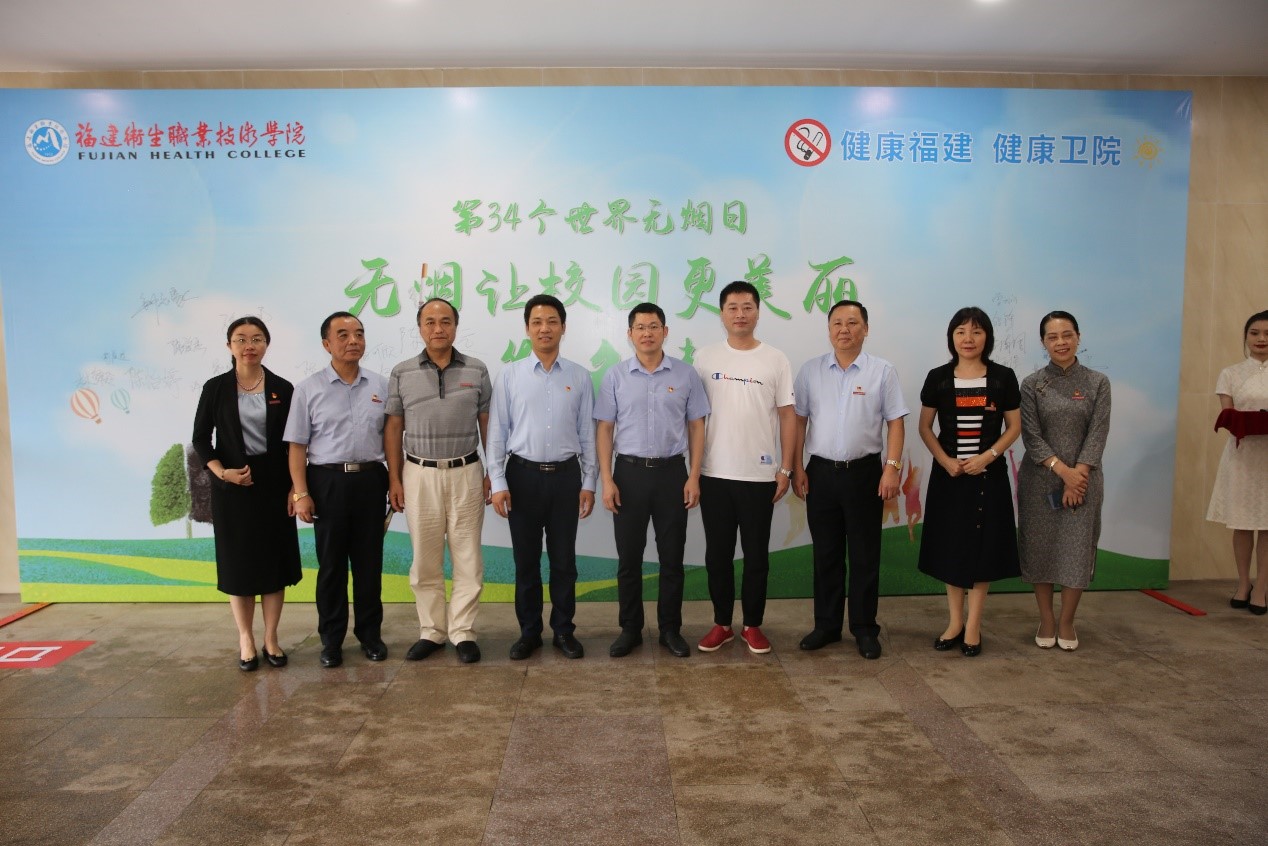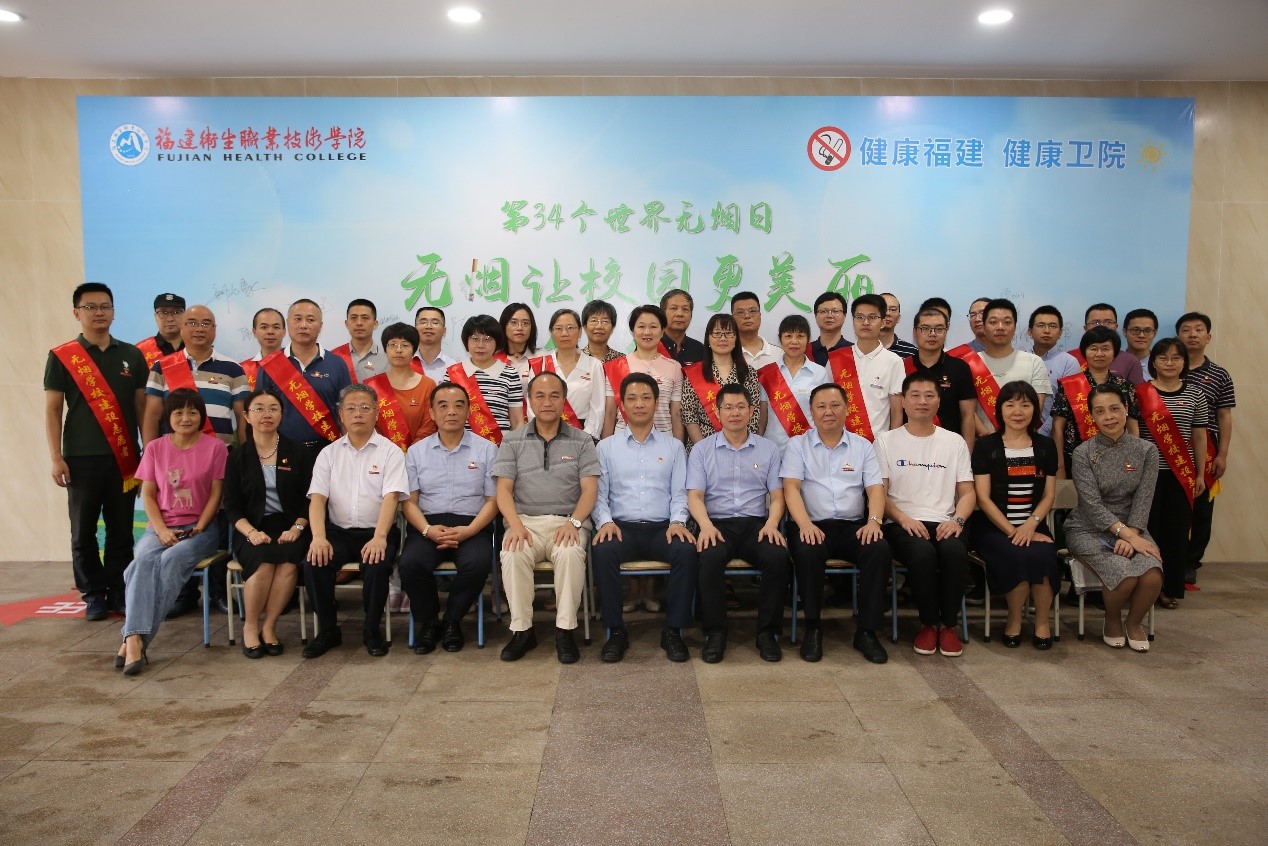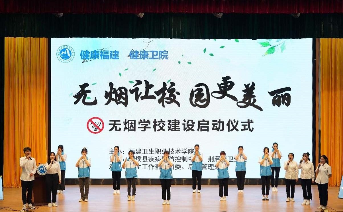 本次活動以“承諾戒煙,共享無煙環境”為主題。福建省教育廳體育衛生藝術教育與語言文字處副處長徐清周、福建省衛生健康委員會規劃發展與信息化處副處長林再得、閩侯縣疾病預防控制中心副主任黃小龍等嘉賓蒞臨指導,學院領導班子全體成員、全體中層干部及400余名師生代表參加了啟動儀式。儀式由副院長、學院無煙校園創建領導小組組長陳貞健主持。